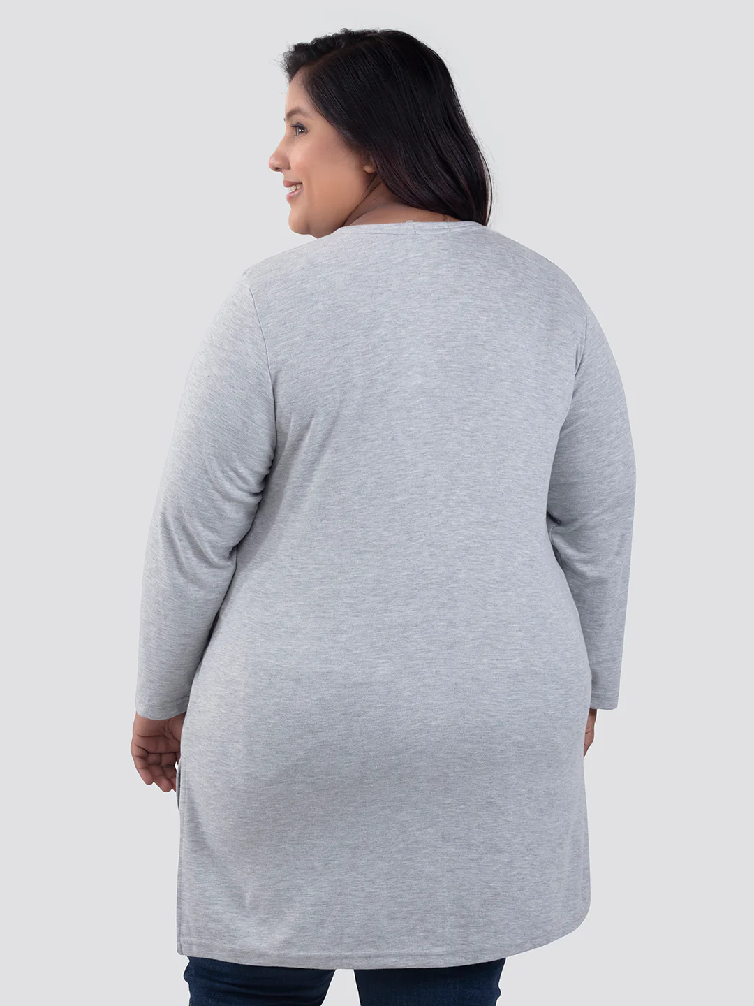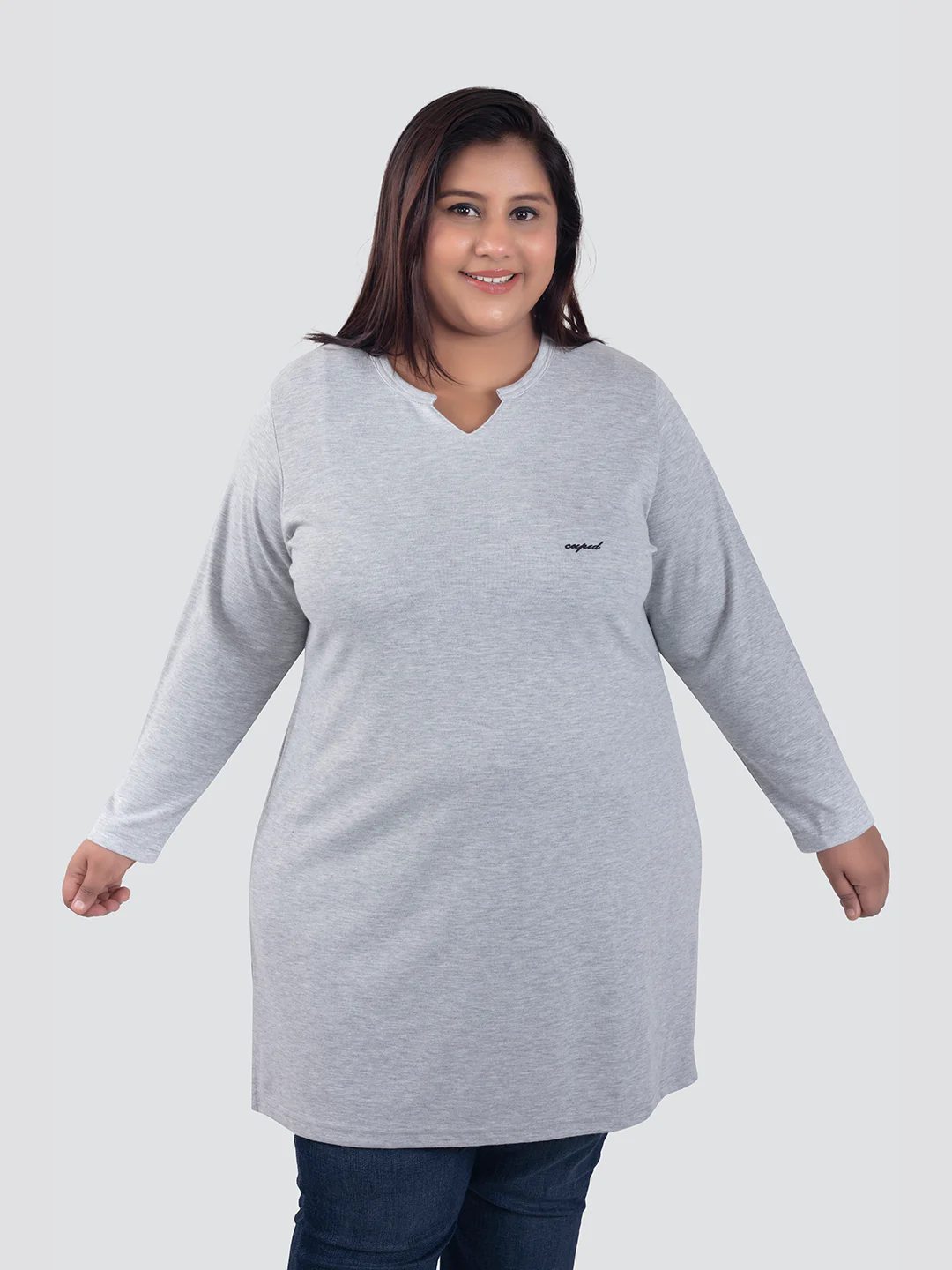 This V-neck full sleeve plus size long top for women ensures to provide all-time coziness and keeps you warm both inside and outdoors.