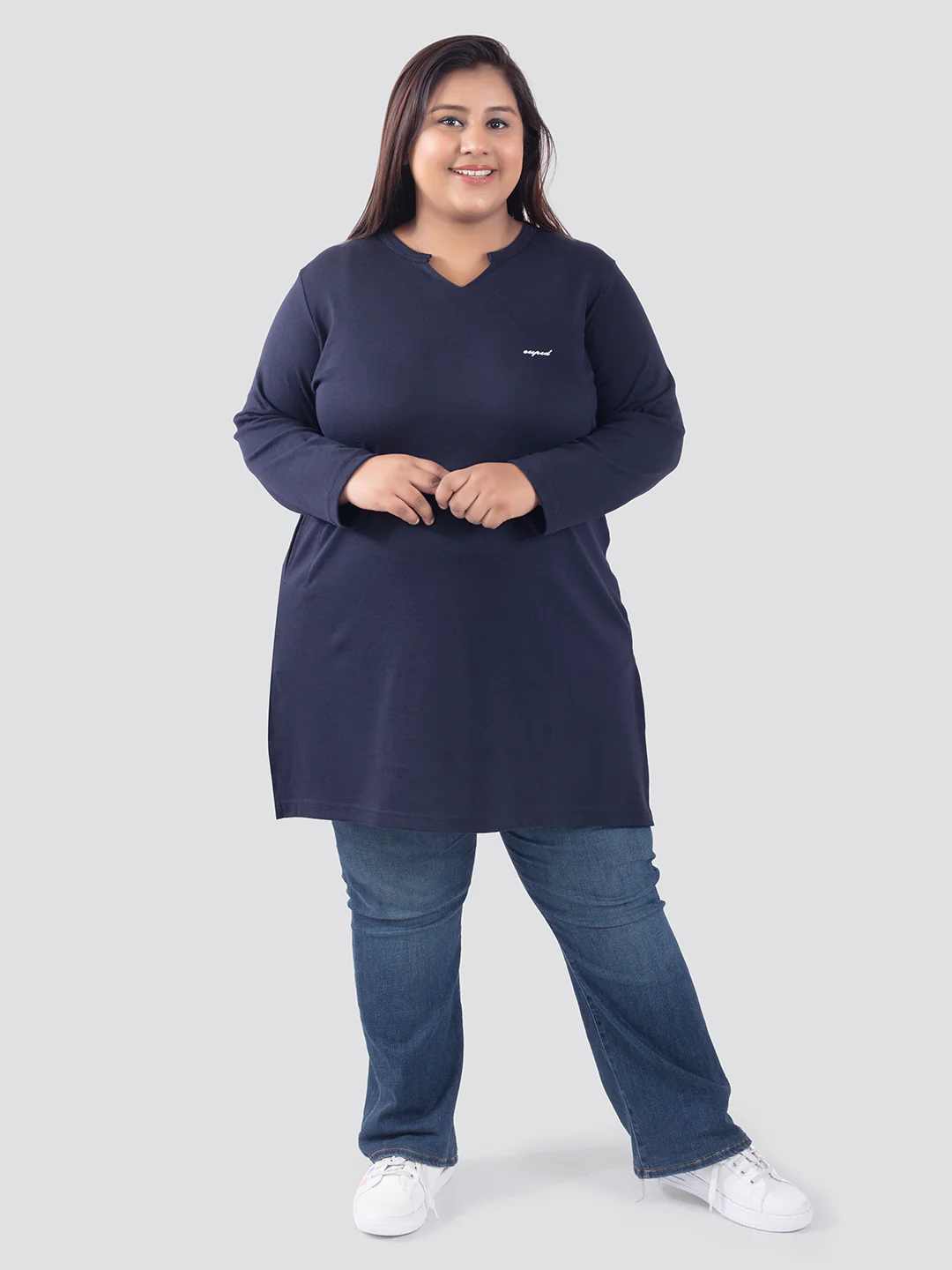This V-neck full sleeve plus size long top for women ensures to provide all-time coziness and keeps you warm both inside and outdoors.